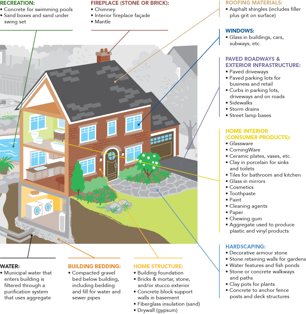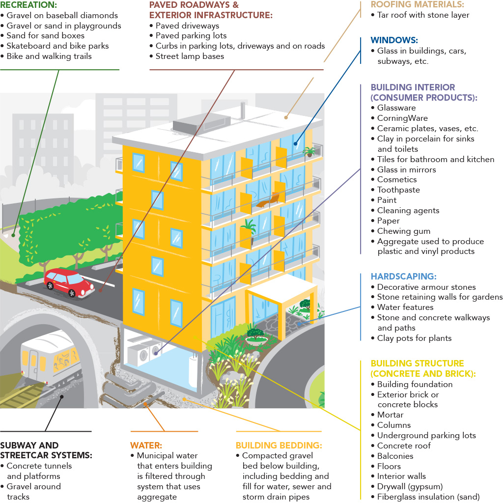 Not all aggregate is the same. For example, 8,000 tonnes of stone, sand and gravel are required per 1 km of a single-lane roadway. While subgrade and subbase materials can vary, asphalt and concrete used for roads demand specific high-quality aggregate. Large infrastructure projects, such as the Trafalgar Memorial Hospital, require about 300,000 tonnes of aggregate, most of which is concrete, made with high-quality aggregate.